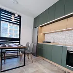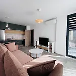 Eine komplette Küche mit einem Wasserkocher, einem Kühlschrank und Glasgeschirr gehört zur Ausstattung dieses Apartments für Selbstversorger. Mit Ausstattung zur Kaffee- & Teezubereitung ausgestattet, bietet die Unterkunft den Gästen einen komfortablen und mühelosen Aufenthalt. Das Happy House, das 5 Gehminuten vom Apartment entfernt liegt, serviert osteuropäische Gerichte. Dieses Apartment bietet einen Außenpool und einen Garten zum Entspannen und Verjüngen an.